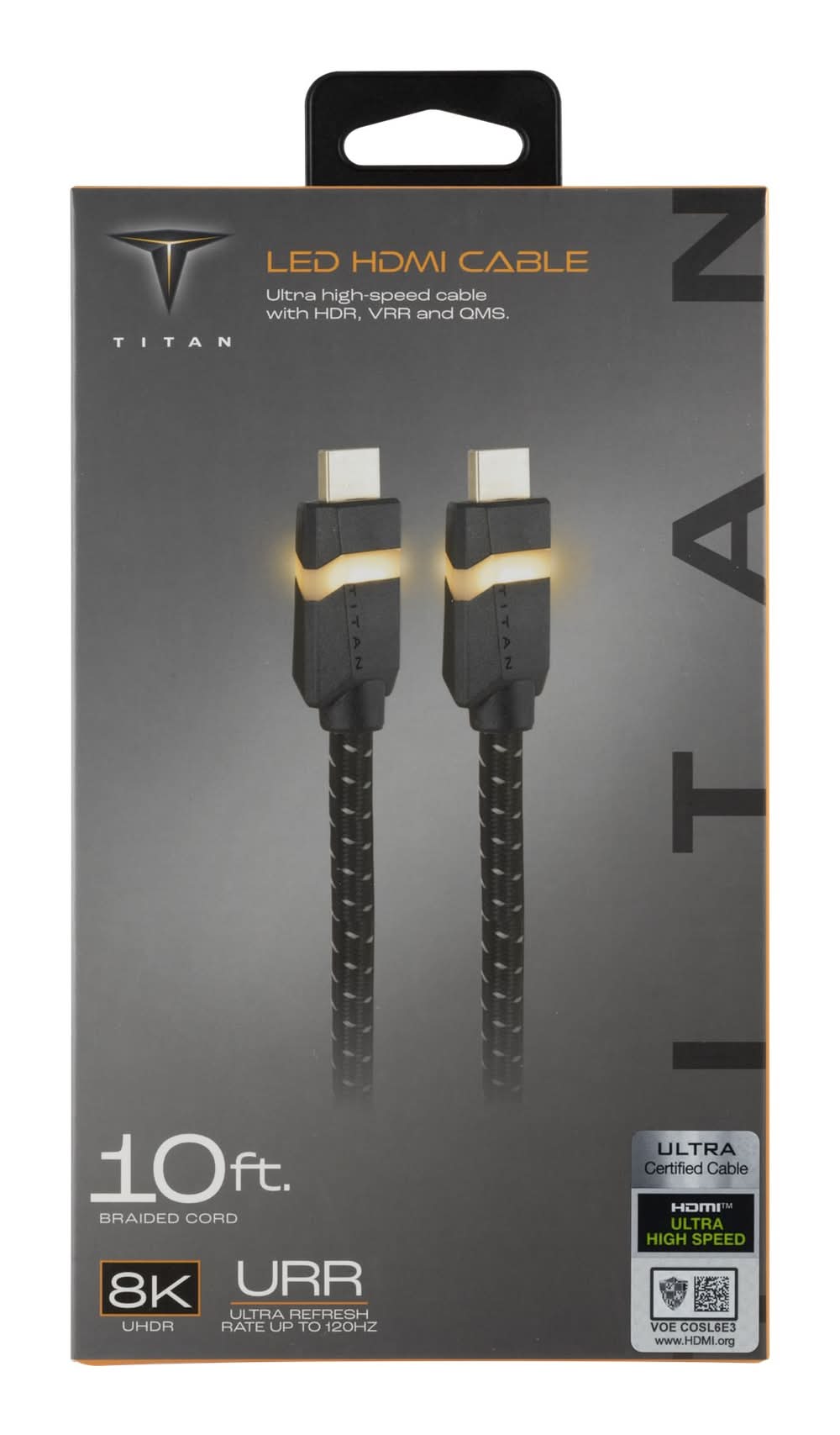 Jasco Titan 8k Hdmi 2.1 Cable Led Gaming Cable, 10 Ft, Black- Gold