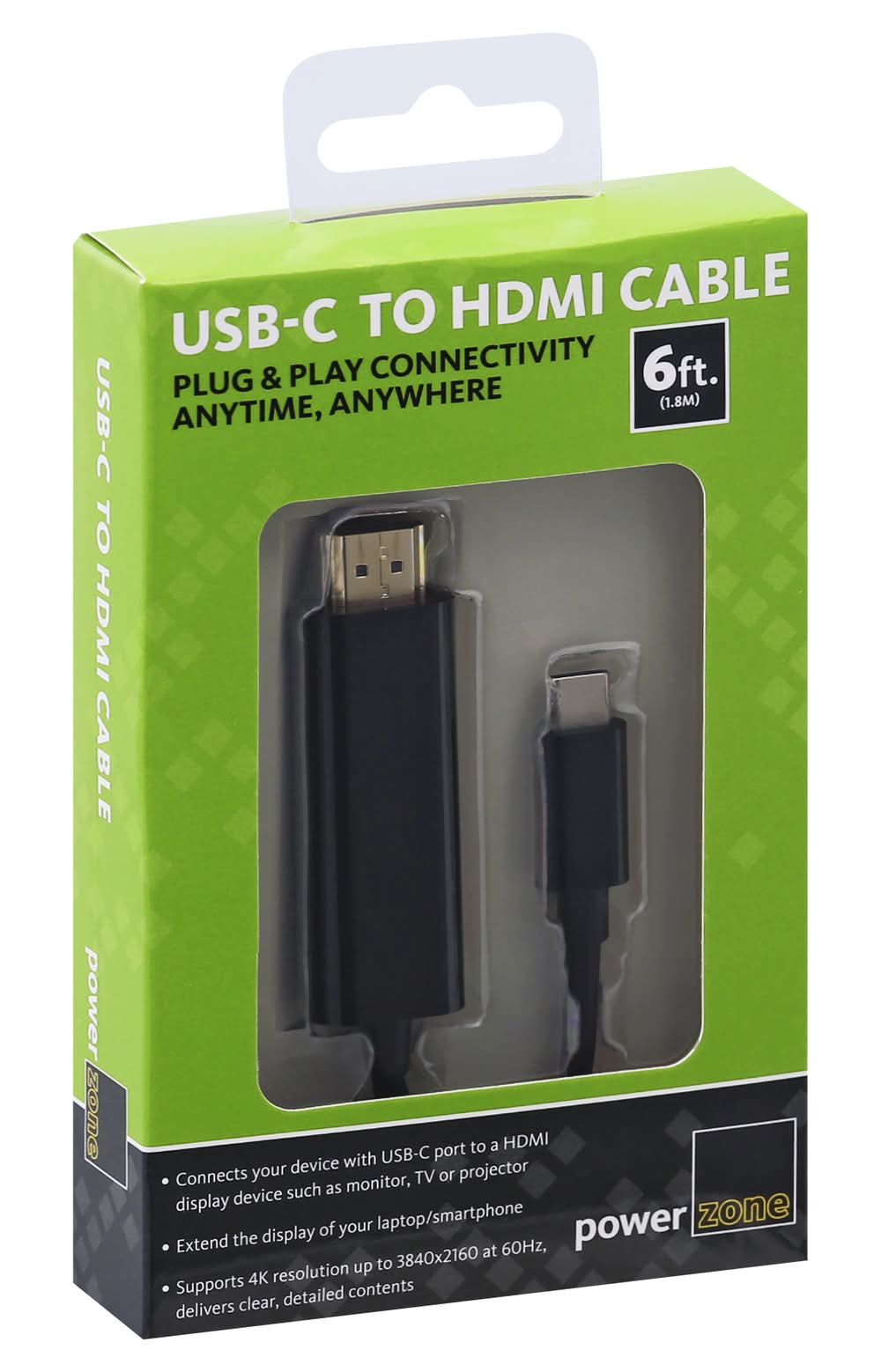 Power Zone 6 Feet Usb-C To Hdmi Cable