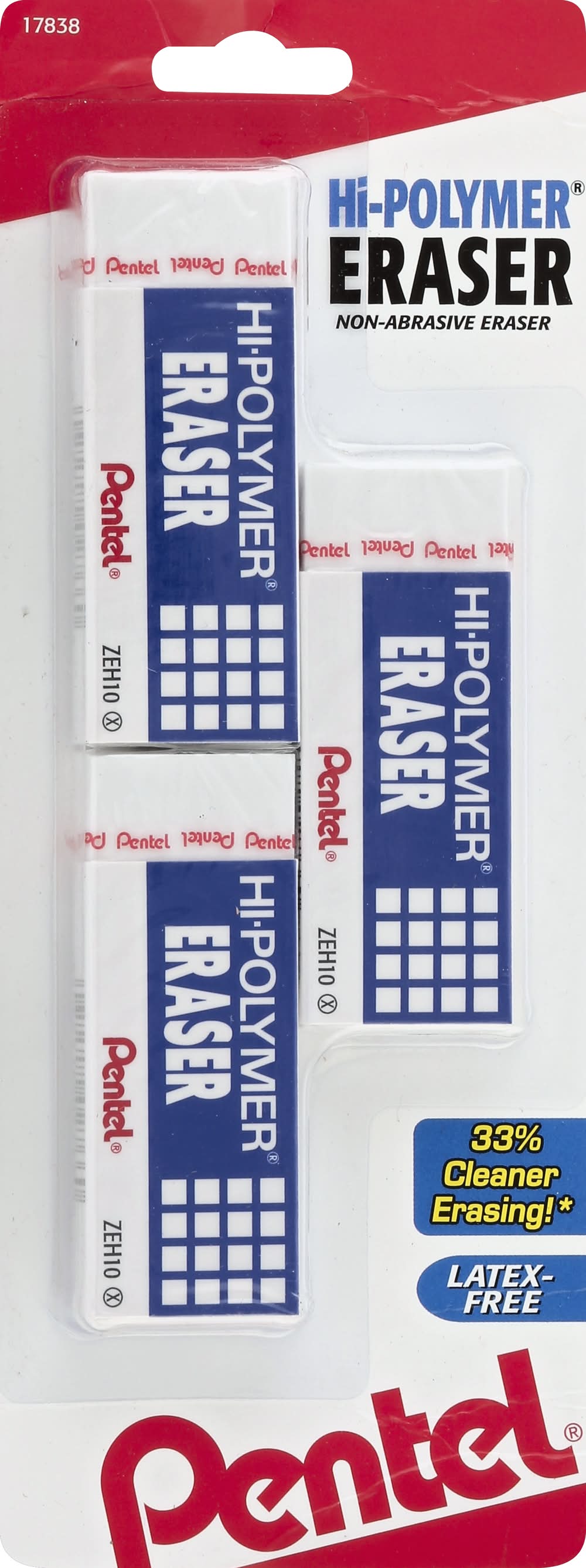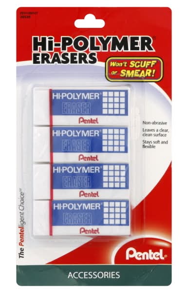Pentel Hi-Polymer Block Erasers, White (4 ct)