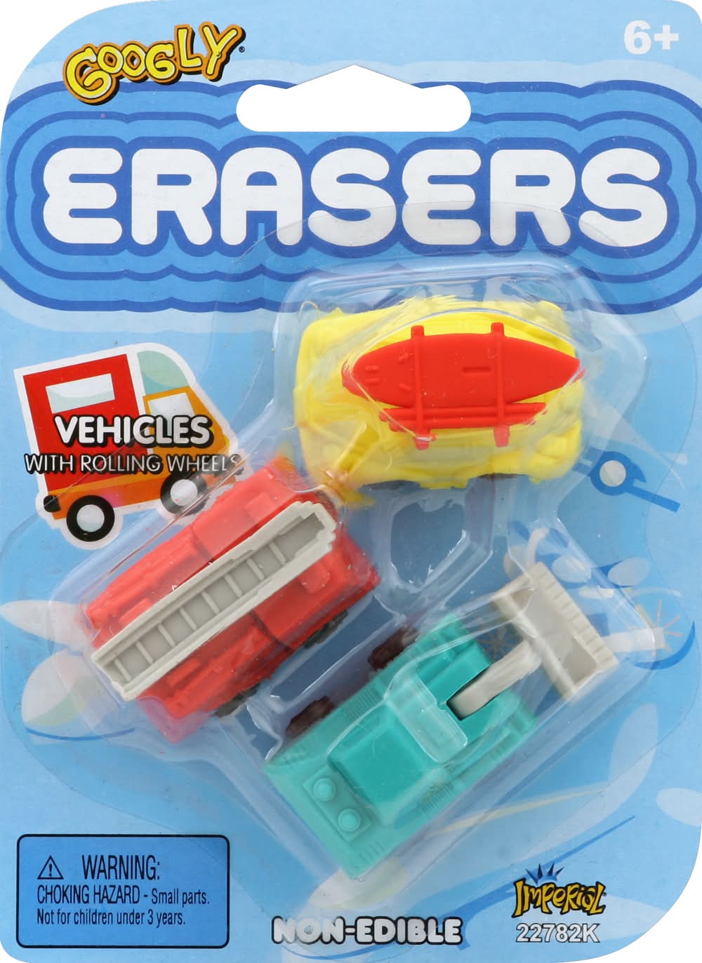Googly Erasers Vehicle With Rolling Wheels (3 ct)