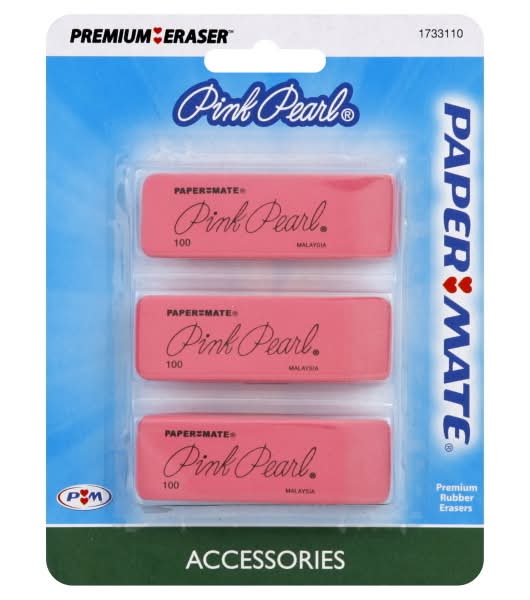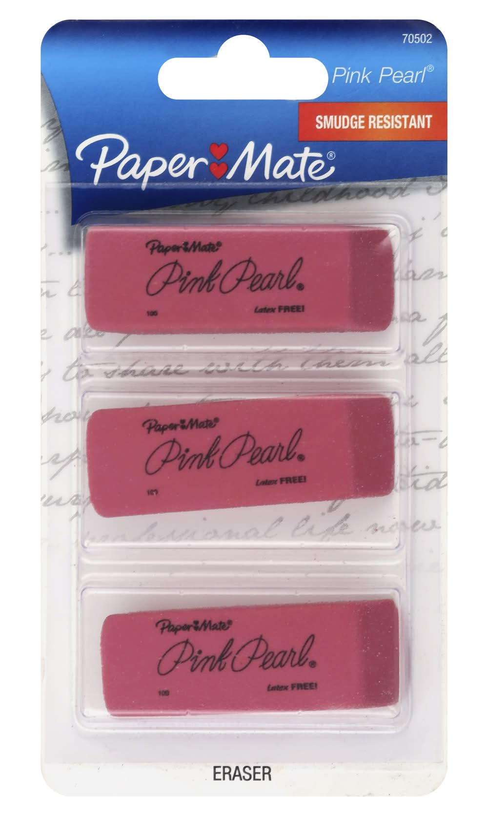 Paper Mate Pink Pearl Smudge Resistant Eraser, Large, Pink (3 ct)