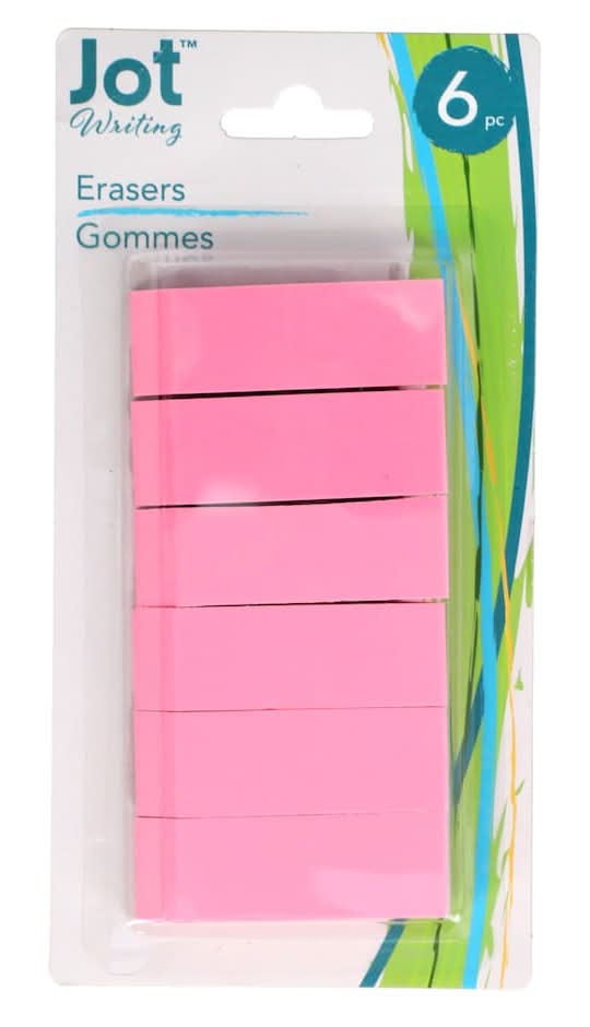 Jot Writing Beveled Erasers, 2.25 in, Pink (6 ct)