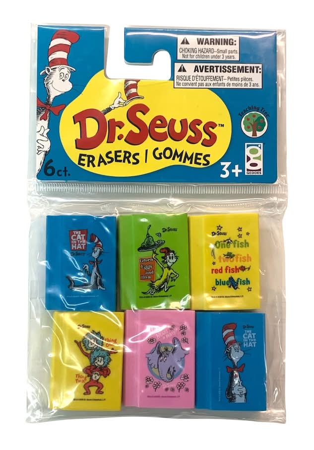 Teaching Tree Dr. Seuss Book Shaped Erasers For Age 3+ Years, Assorted (6 ct)