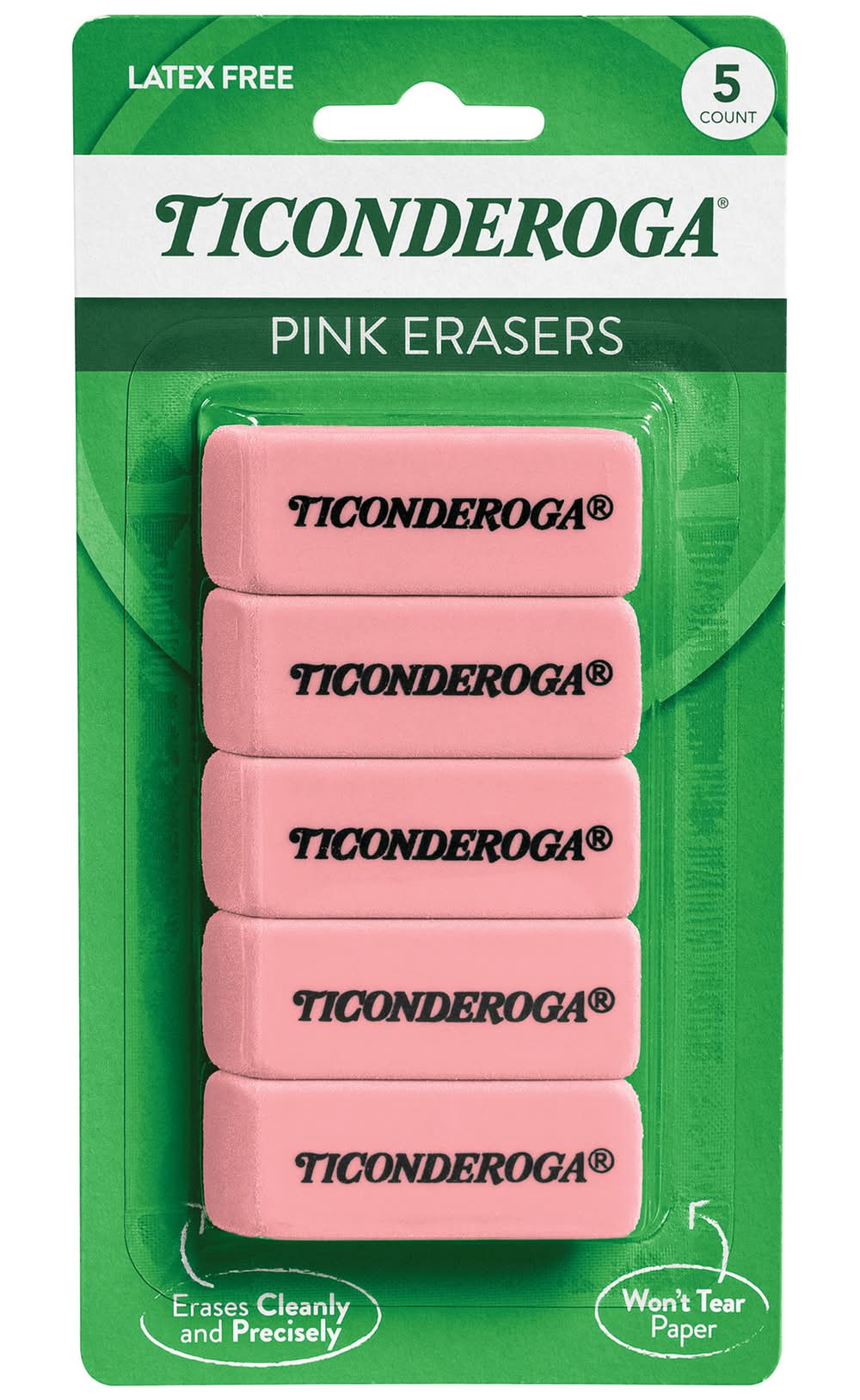 Ticonderoga Rectangle Erasers Cleanly and Precisely, Pink (5 ct)
