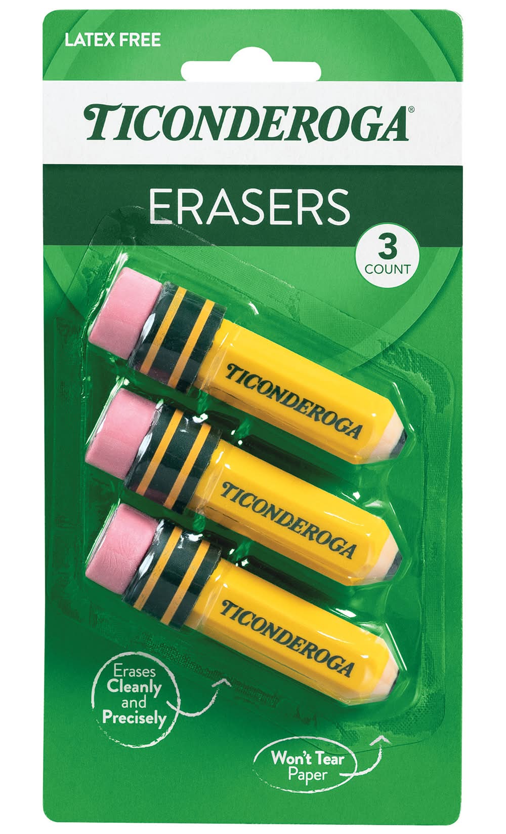 Ticonderoga Erasers, 3 Count, Black,Green,Pink,Yellow (3 ct)