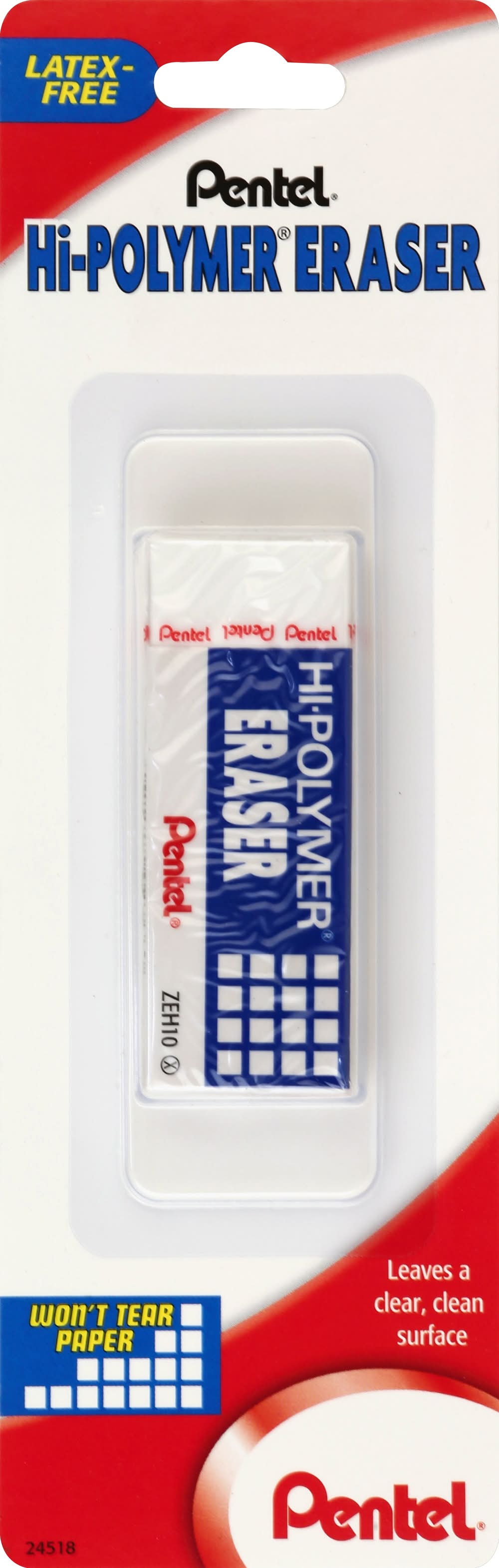 Pentel Hi Polymer Large Vinyl Erasers and Caps, White (6 ct)