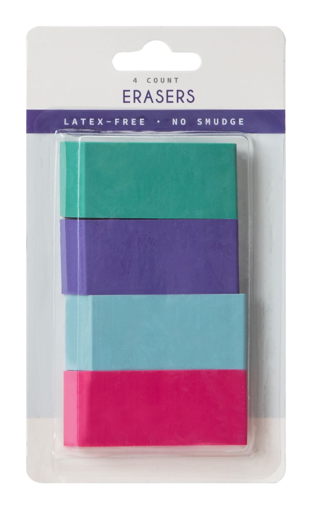 Five Below Latex-Free Erasers, Assorted (4 ct)