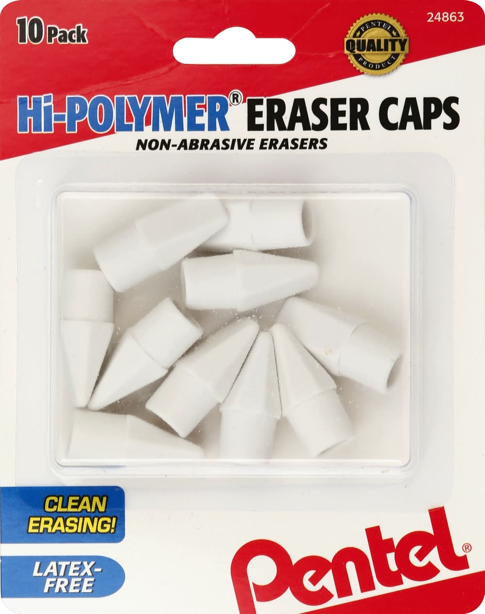 Pentel Hi-Polymer Latex Free White Cap Erasers 10-pk (0.8 oz)