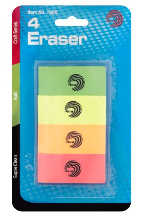 Ava Eraser, Green-Orange-Red-Yellow (4 ct)
