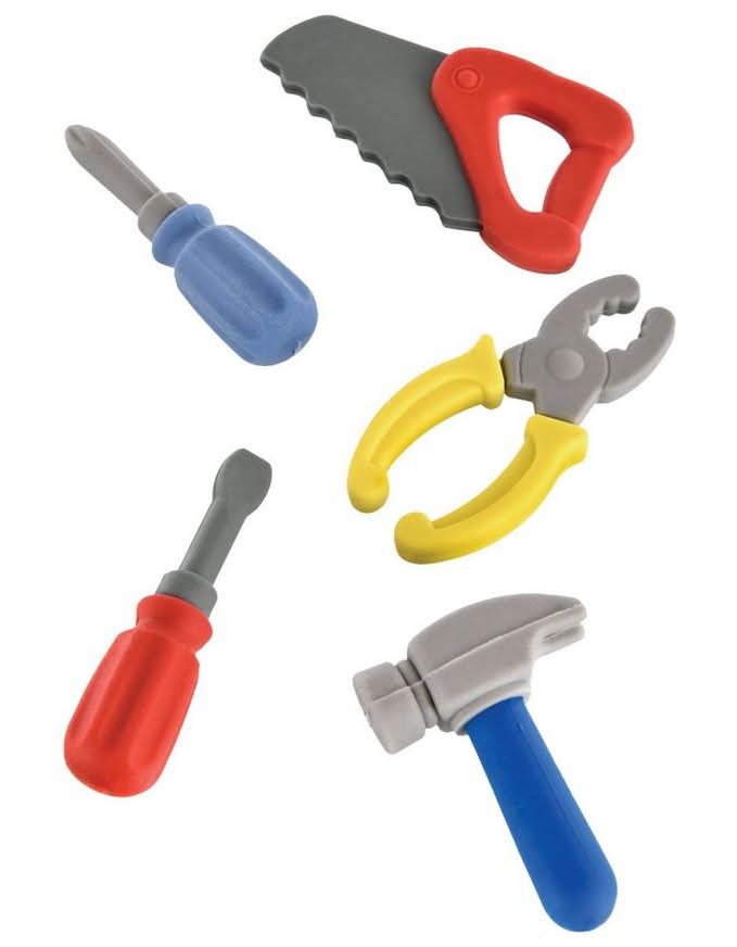 Party City Hardware Tool Erasers, 2.08"-1.85"-2.08"- 2.23"-2.08" (5 ct)