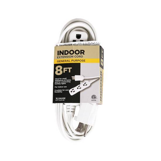3 Outlet Indoor Extension Cord, 8 ft, White