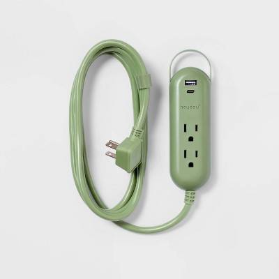 Heyday 2 Outlet Indoor Extension Cord With Usb and Usb-C Ports, 6 ft, Green