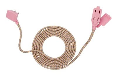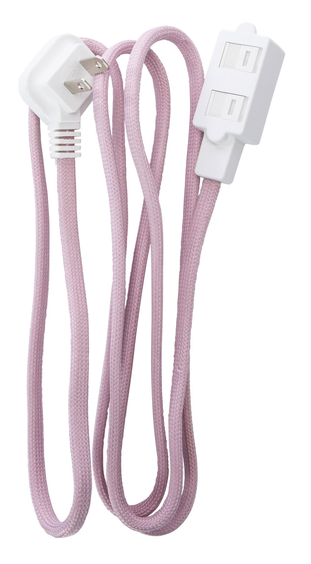 Globe Electric Fabric Extension Cord With 3 Polarized Outlets, 9 ft, Pink
