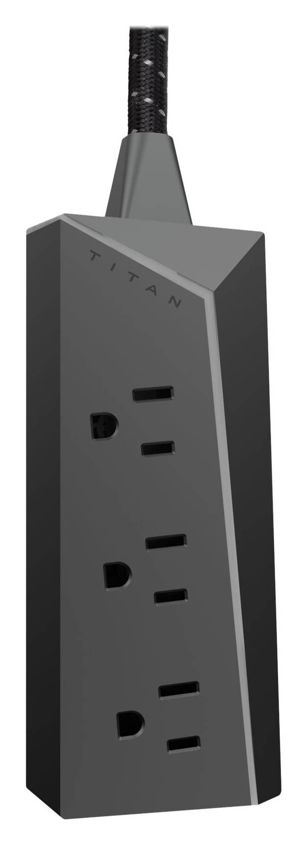 Titan 3-Outlet Grounded Extension Cord With Led Braided Cord, 8', Black