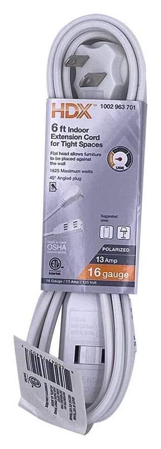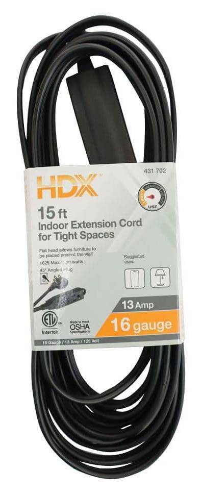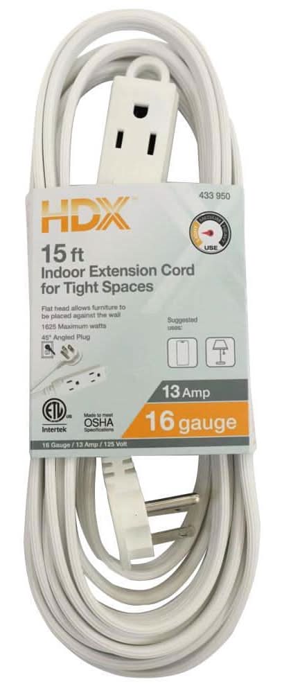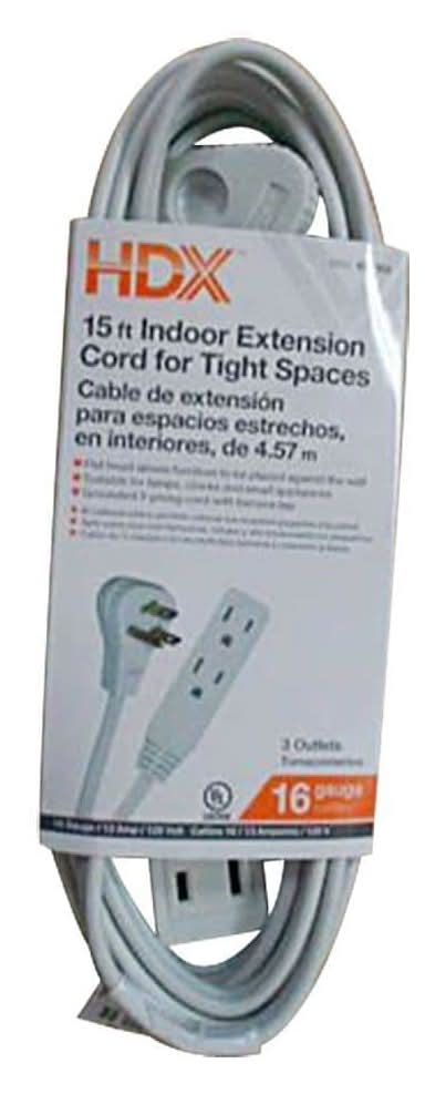 HDX Indoor Extension Cord For Tight Spaces, 15 ft, White