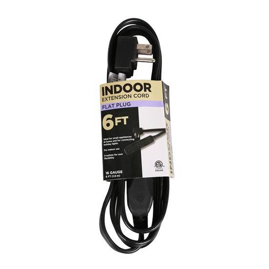 Cablectric Indoor Flat Plug Extension Cord, 6 ft, Black (6 pint)