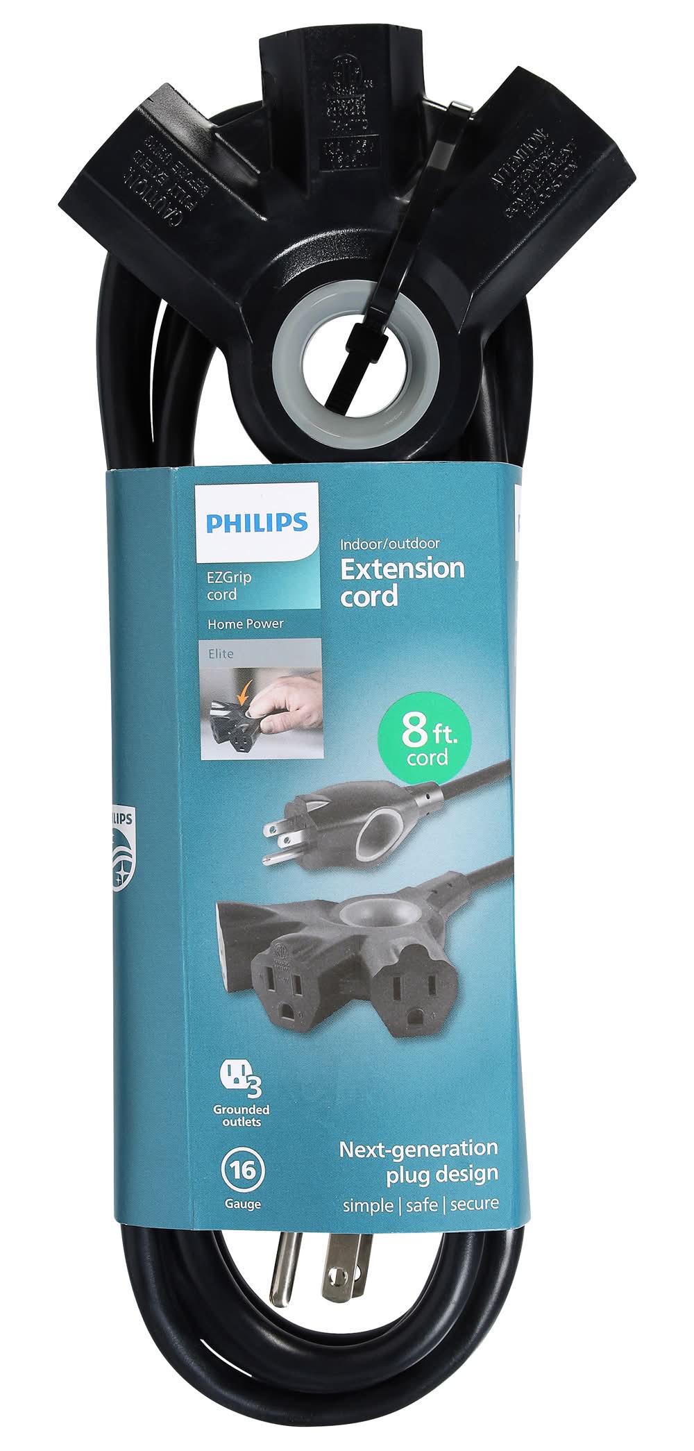 Philips Ezgrip Elite Indoor Outdoor Extension Cord, 8 ft, Black
