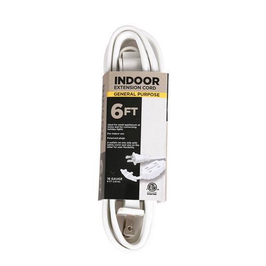 3-Outlet Indoor Polarized Extension Cord, 6 ft, White