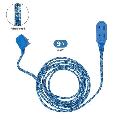 Globe Electric Fabric Extension Cord With 3 Polarized Outlets, 9 ft, Metallic Blue