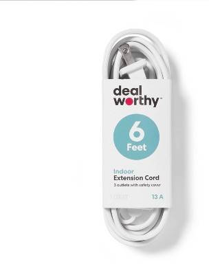 Dealworthy Outlet Indoor Extension Cord With 3 Outlets With Safety Cover, 6 ft, White