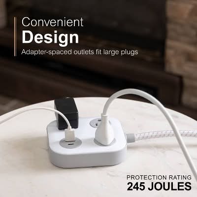 General Electric 3-Outlet Surge Protector With Usb Charging Extension Cable, White-Gray