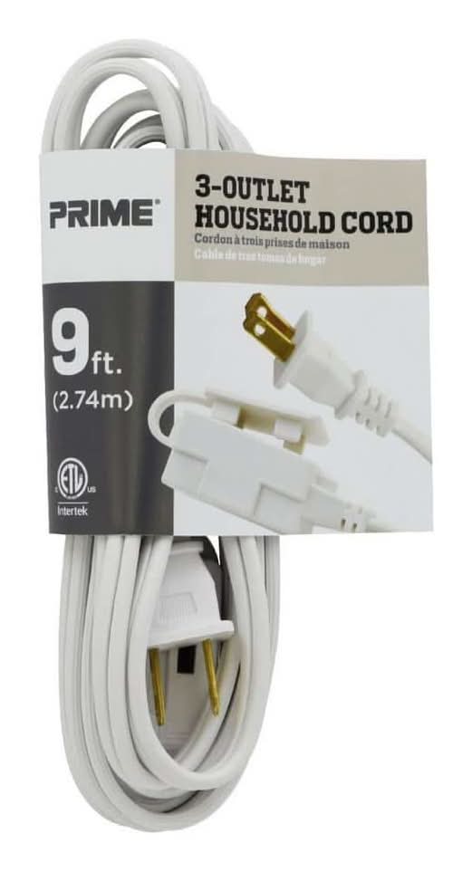Prime 16/2 Spt-2 3-outlet Household Extension Cord, 9 ft, White