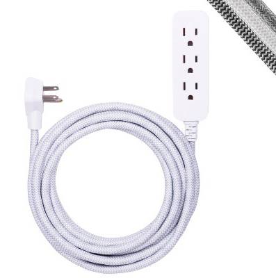 General Electric 3 Outlet Grounded Extension Braided Cord, 15 ft, Gray-White