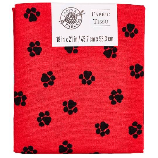 Loops & Threads Paw Print Fabric, 18 in x 21 in, Red - Black