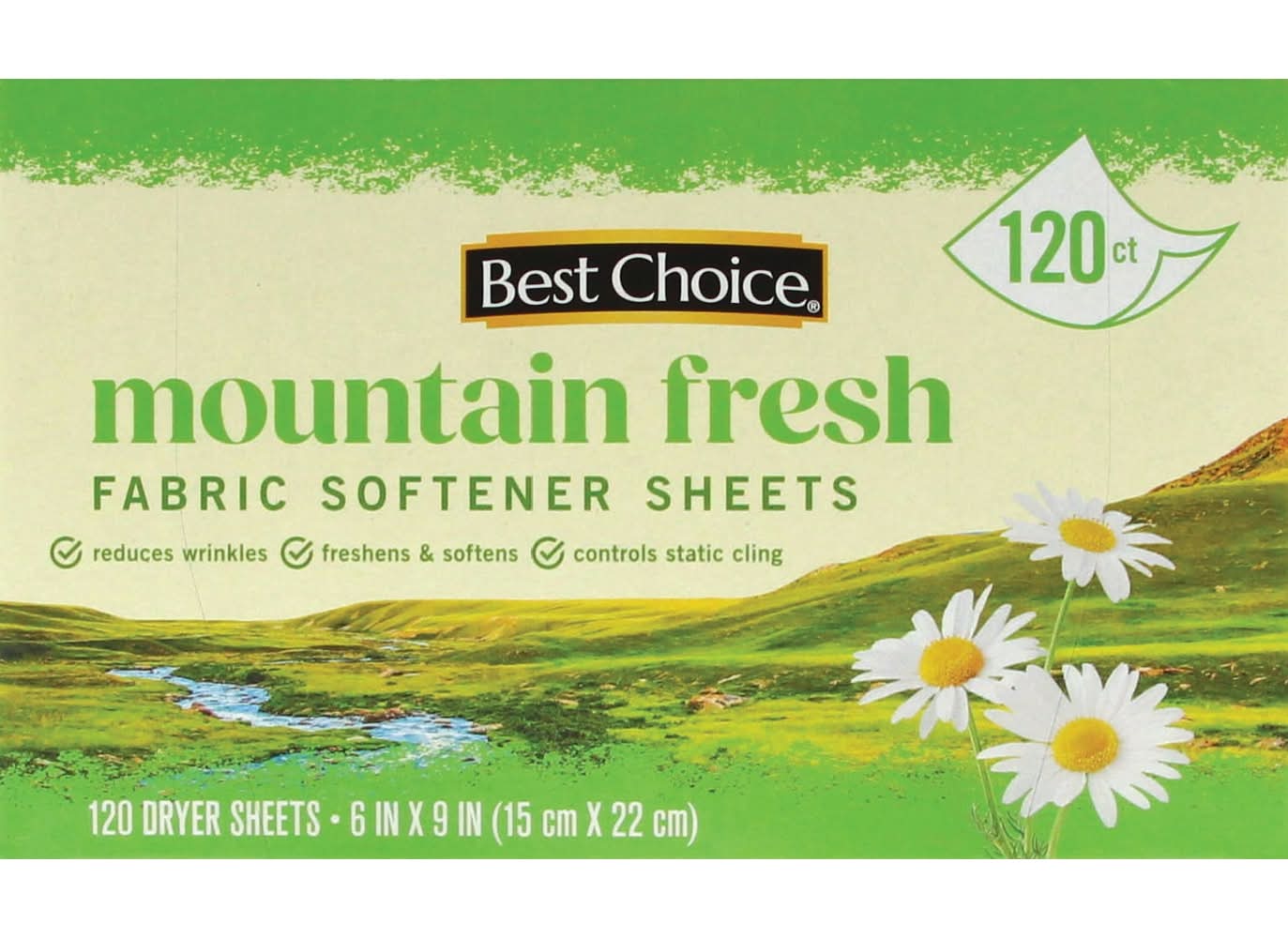 Best Choice Mountain Fresh Fabric Softer Sheet, 6x9 in (120 ct)
