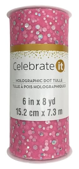 Celebrate It Holographic Dot Tulle, 6 x 288", Pink