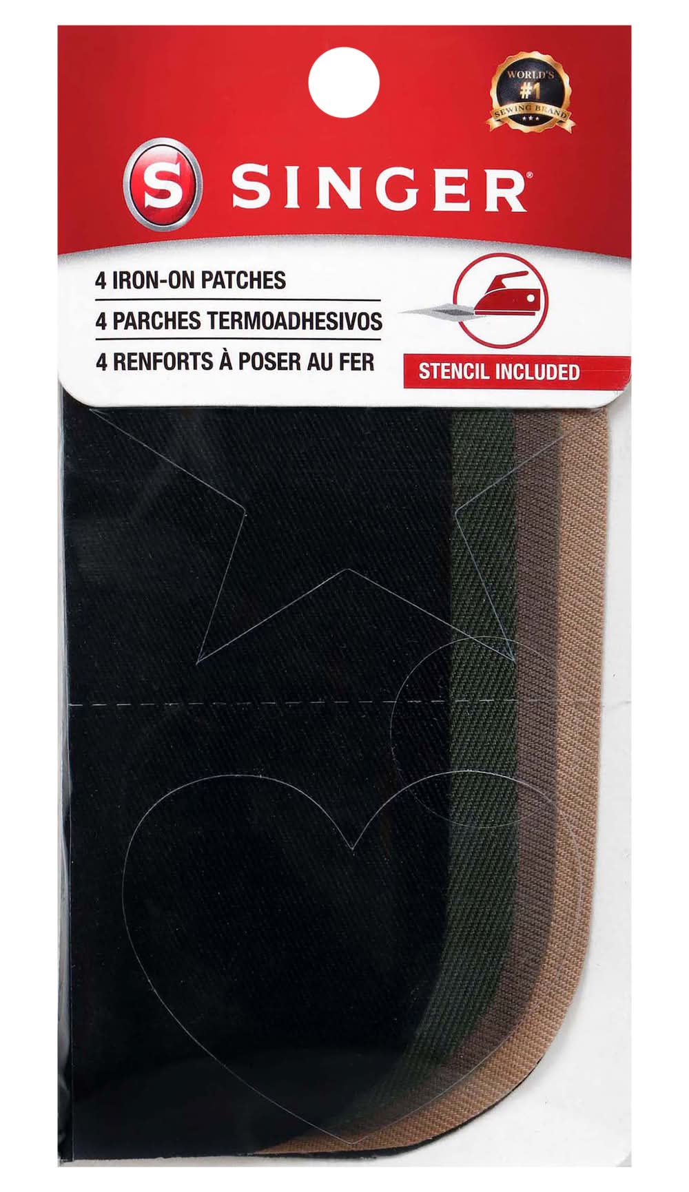 Singer Fabric Iron-On Patches Khaki Uniform Set With Stencil, Set Of 4