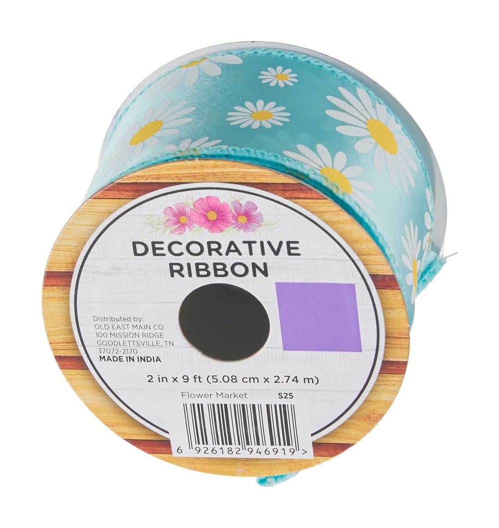 Decorative Spring Daisy Ribbon, 2 in x 9 ft, Assorted