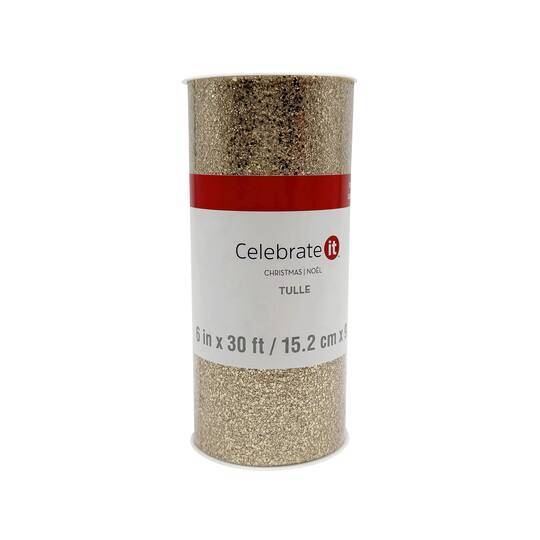 Celebrate It Tulle, 6" X 30Ft., Gold Glitter