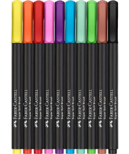 Faber-Castell Felt Tip Pen With Soft Brush Nib, Assorted (10 ct)