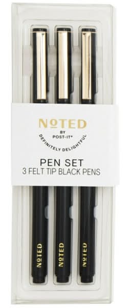 Post-It Felt Tip Pens, Fine Point, 0.5 Mm, Black Ink, Black Barrels (3 ct)