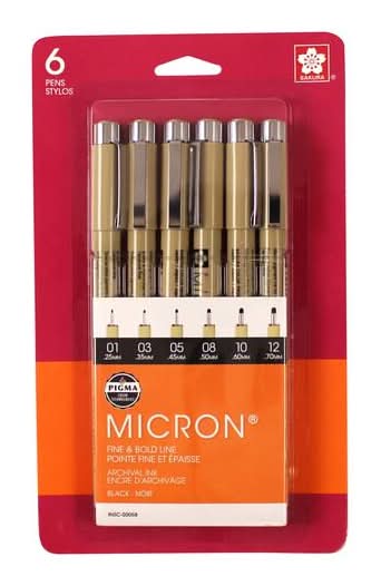 Sakura Micron Fine & Bold Line Ink Pens, Black (6 ct)