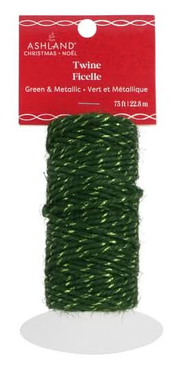 Ashland Metallic Christmas Twine, 75 ft, Green