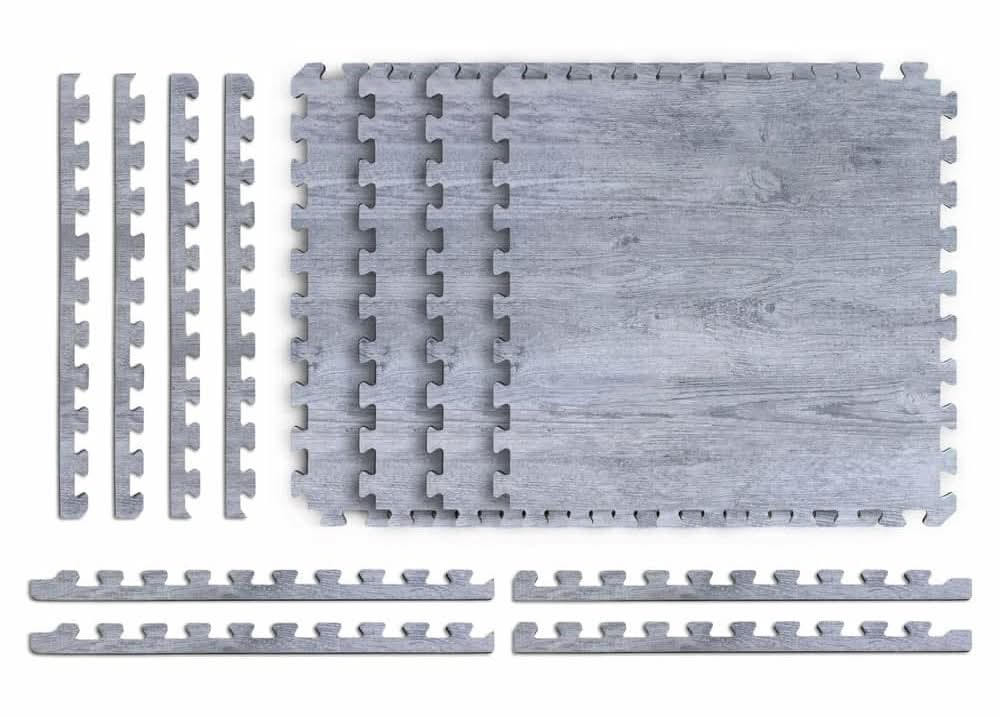 Norsk Reversible Interlocking Faux Wood Foam Floor Tiles, Stone Gray-Black (4 ct)