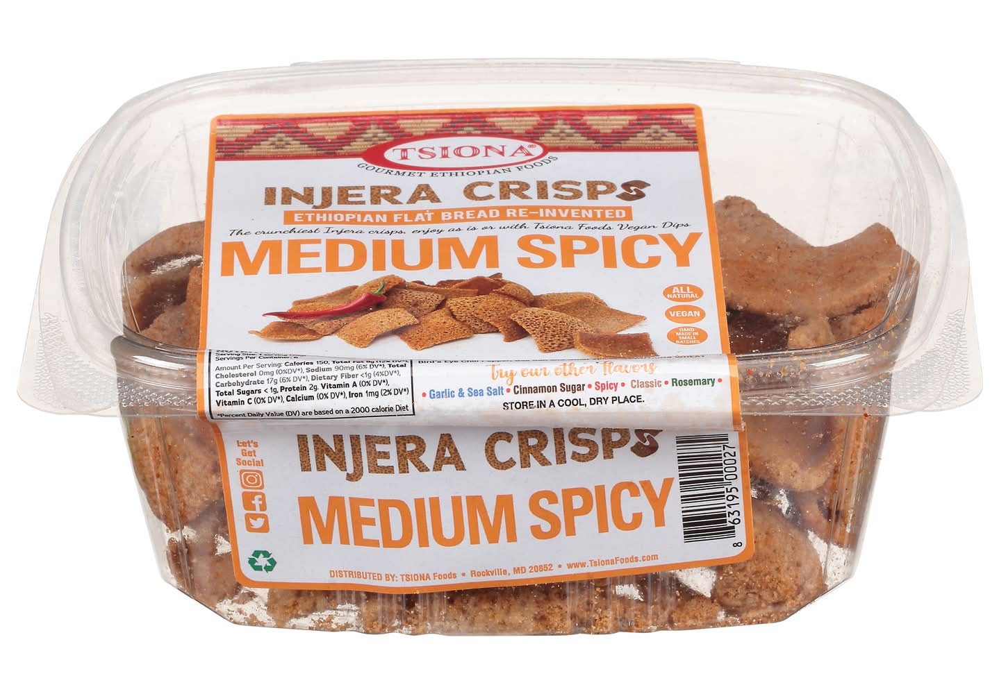 Tsiona Foods Re Invented Injera Crisps Crackers, Medium Spicy (6 oz)