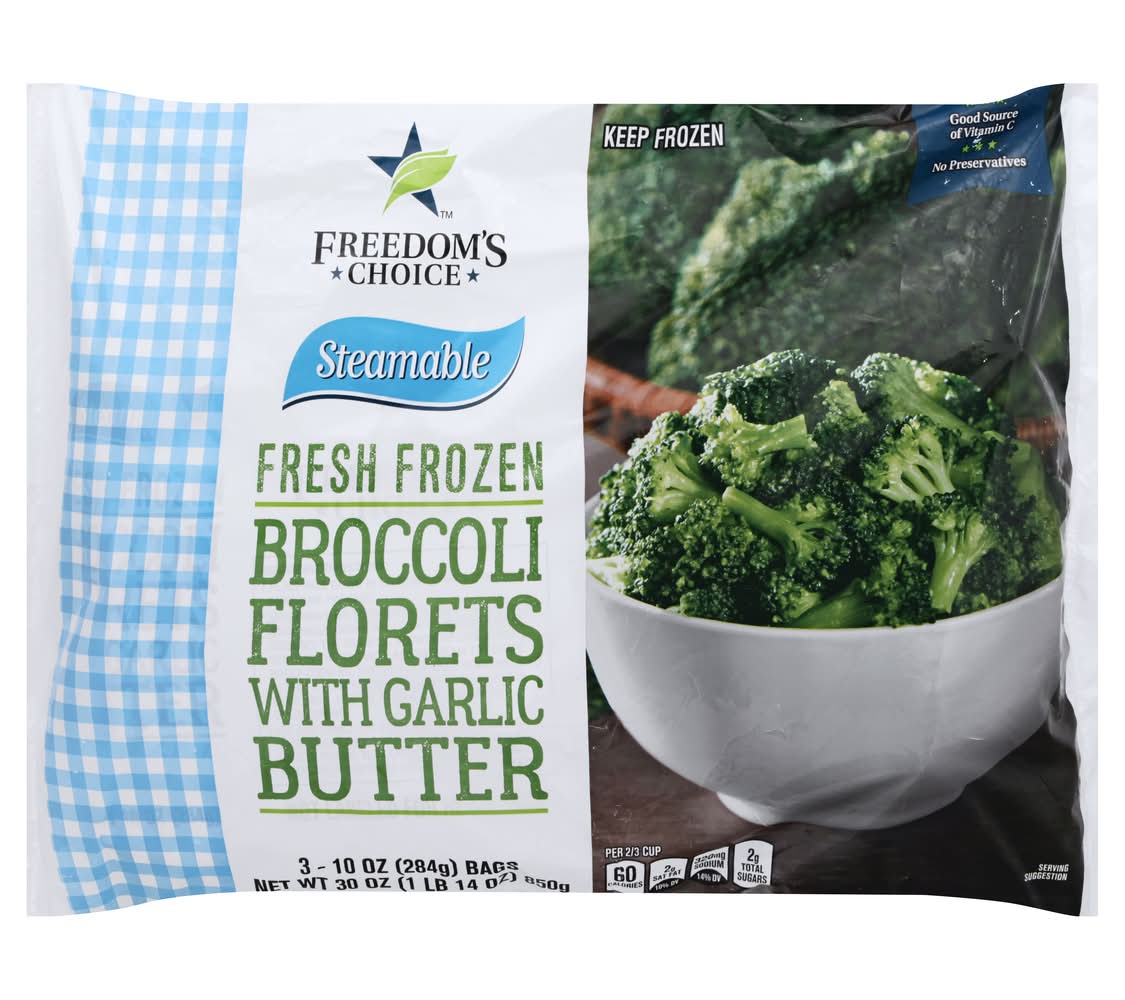 Freedom's Choice Steamable Fresh Frozen Broccoli Florets, Garlic Butter (30 oz, 3 ct)