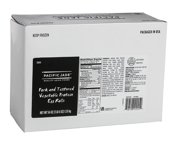 Pacific Jade Egg Roll Pork Vegetable Cooked Frozen, 18/3 OZ (18 x 3 oz)