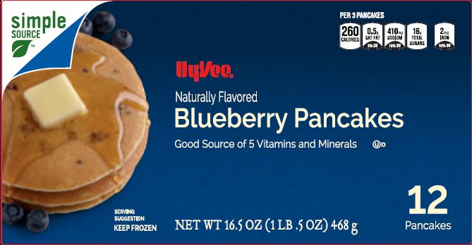Hy-Vee Naturally Flavored Pancakes, Blueberry (16.5 oz, 12 ct)