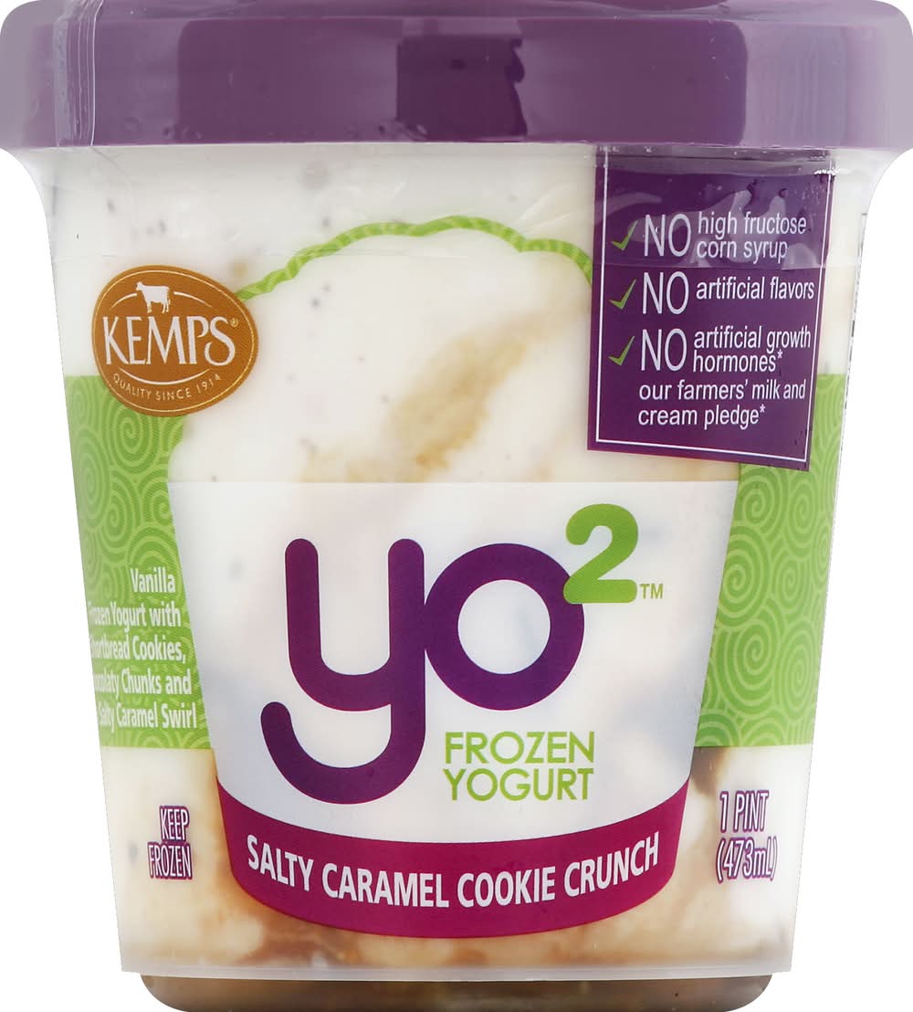 Kemps Yo 2 Frozen Yogurt, Salty Caramel Cookie Crunch (1 pint)