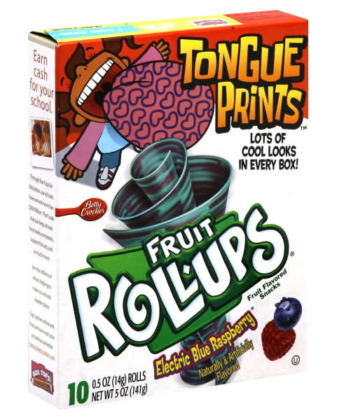 Fruit Roll-Ups Tongue Prints Fruit Flavored Snacks, Electric Blue Raspberry (0.5 oz, 10 ct)