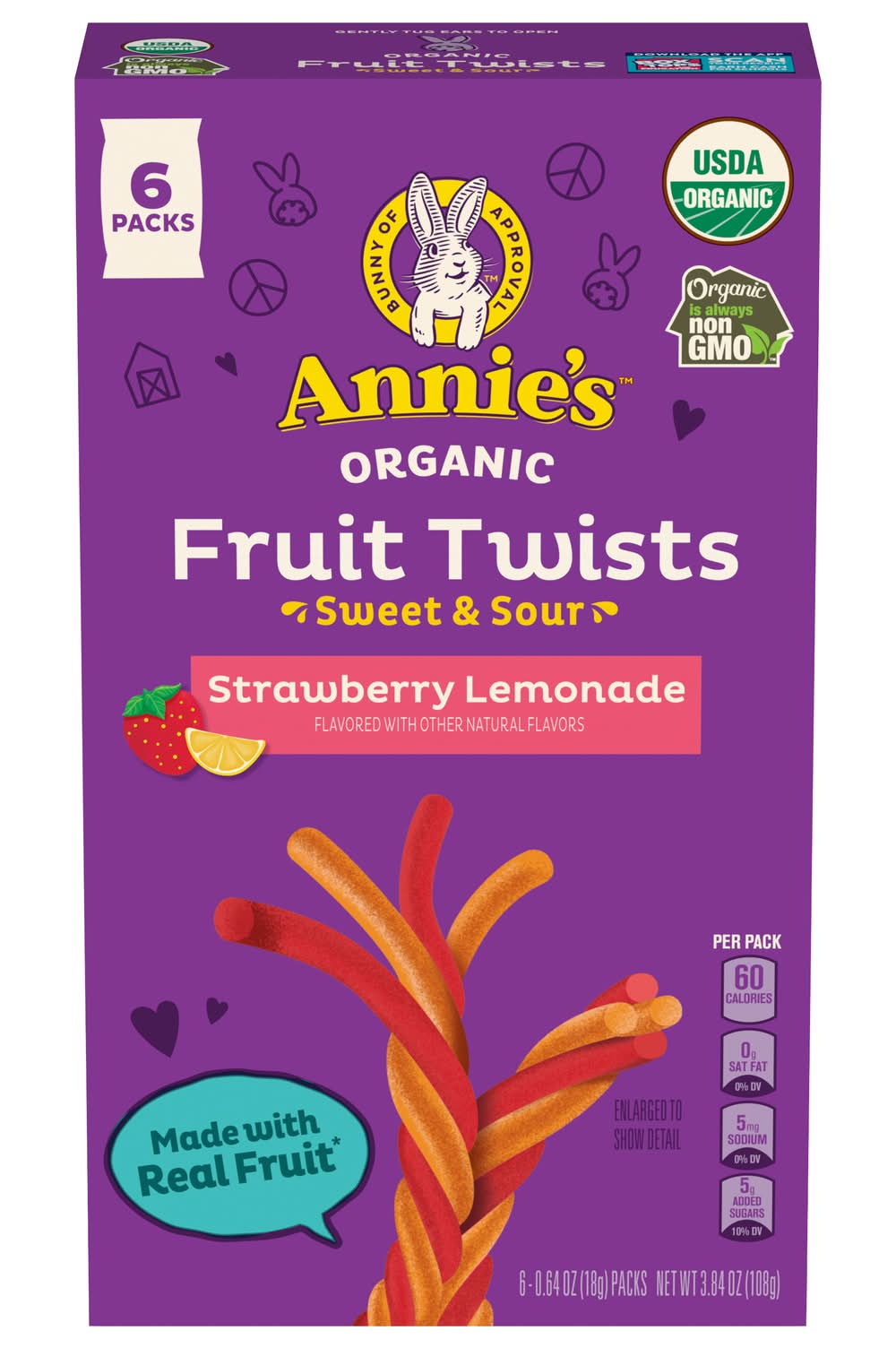 Annie's Organic Sweet and Sour Fruit Twists, Strawberry Lemonade (6 x 0.64 oz)