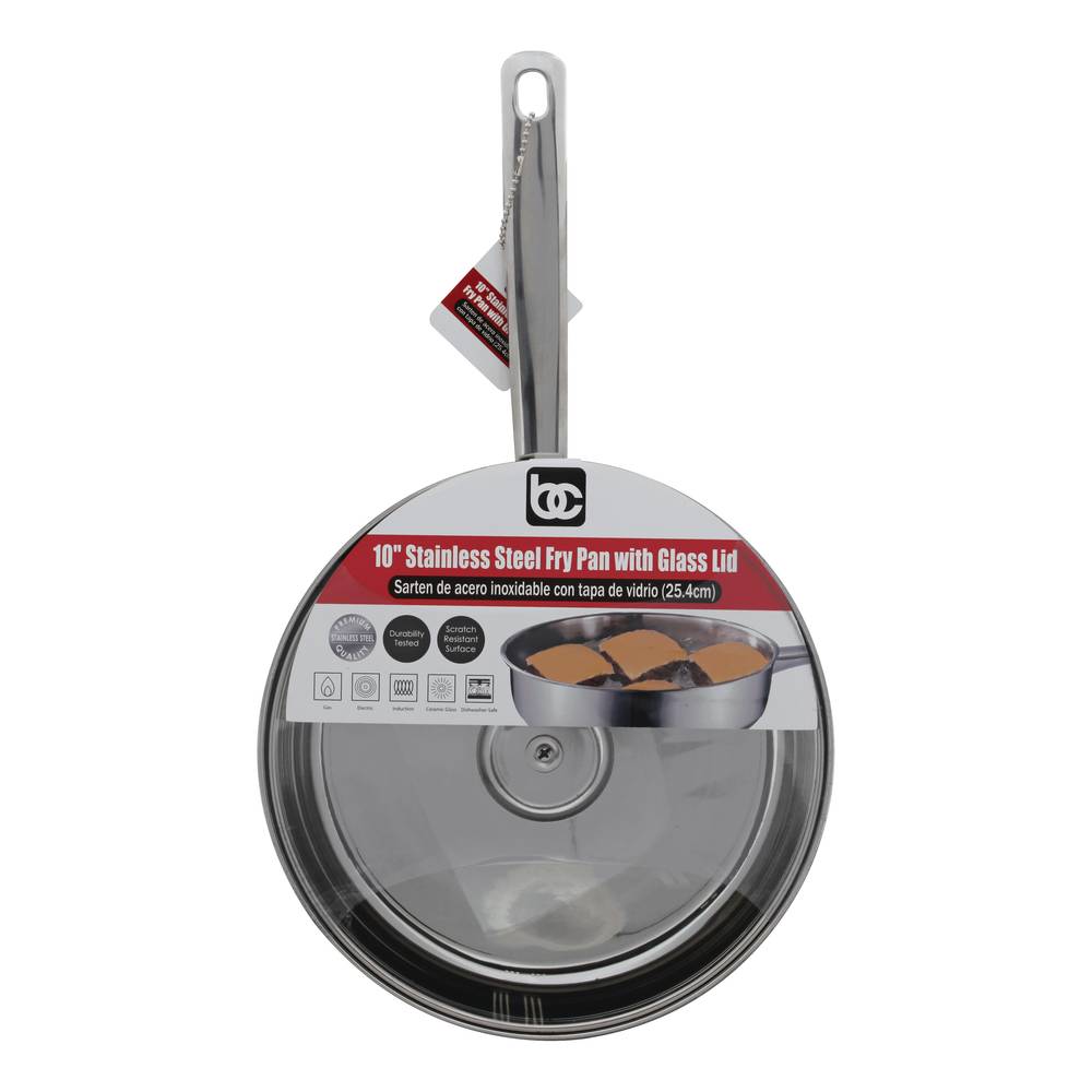 BC 10" Stainless Steel Fry Pan With Glass Lid