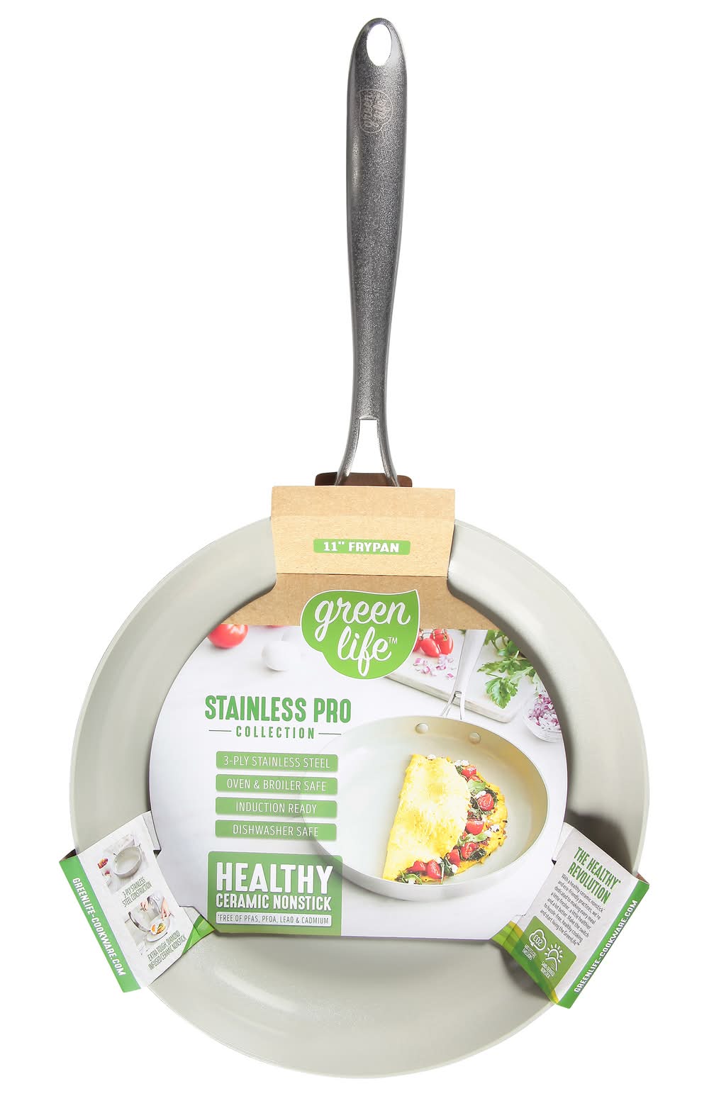 GreenLife Stainless Pro Collection Healthy Ceramic Nonstick Frypan, 11"