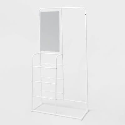 Brightroom Metal Garment Rack With Mirror & Shelving, White