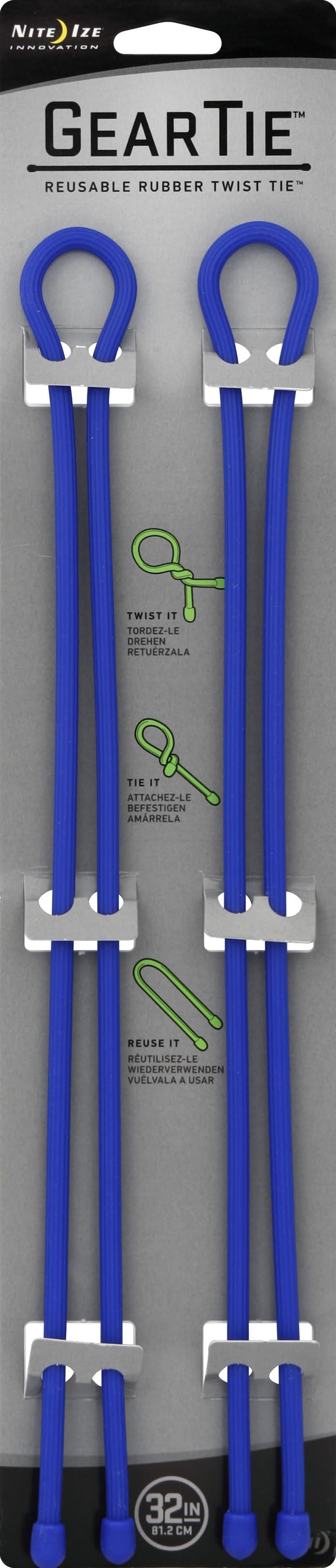 Gear Tie Nite Ize Reusable Rubber Twist Tie, Blue (2 ct)