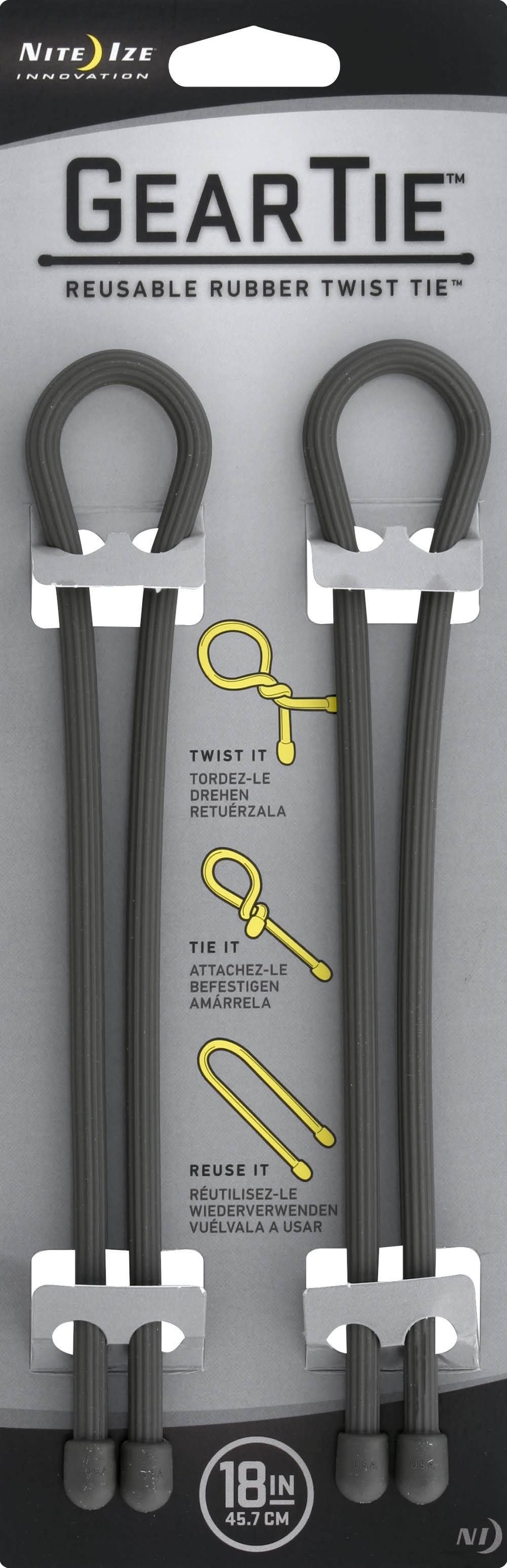 Nite Ize Gear Tie Reusable Rubber Twist Tie, Gray (2 ct)